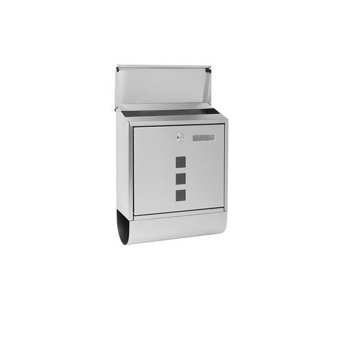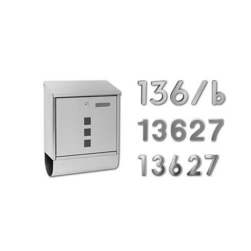 - Kovová poštová schránka s okienkami z číreho plexiskla umožňujúca čiastočný priehľad do jej vnútra a tubusom na tlač.