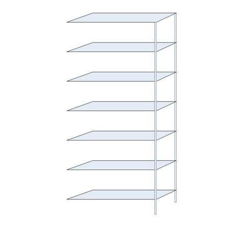Kovový regál Taranis, prístavbový, 300 x 130 x 40 cm, 970 kg, 7 políc, strieborný