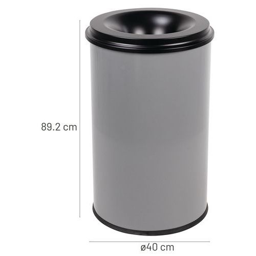 Kovový samozhášací odpadkový kôš Manutan Expert Safe, objem 110 l, sivý/čierny