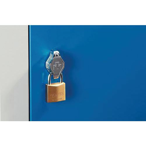 | Názov produktu | Kovová šatníková skriňa, dvere Z - Manutan Expert, 4 oddiely, otočný uzáver, šedá / modrá |