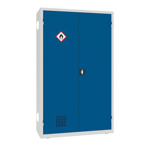 Kovová skriňa na chemikálie, 199 x 120 x 50 cm, sivá/tm. modrá