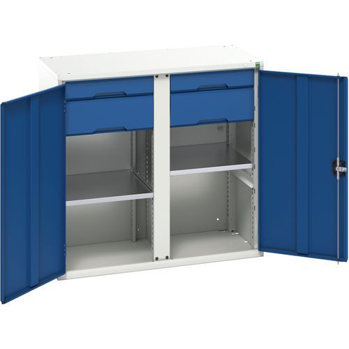 Kovová skriňa na údržbu Bott Verso, 100 x 105 x 55 cm, 2 police, 4 zásuvky, šedá-modrá