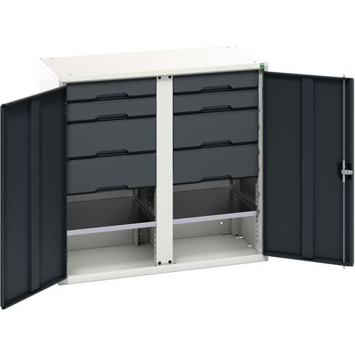 Kovová skriňa na údržbu Bott Verso, 100 x 105 x 55 cm, 2 police, 8 zásuviek, šedá-antracit