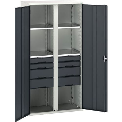 Kovová skriňa na údržbu Bott Verso, 200 x 105 x 55 cm, 4 police, 8 zásuvky, šedá-antracit