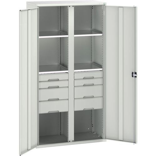 Kovová skriňa na údržbu Bott Verso, 200 x 105 x 55 cm, 4 police, 8 zásuvky, šedá-šedá