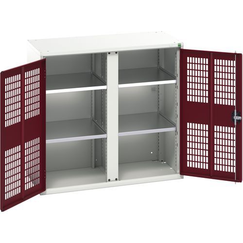 Kovová skriňa na údržbu Bott Verso, drôtené dvere, 100 x 105 x 55 cm, 4 police, šedá-červená