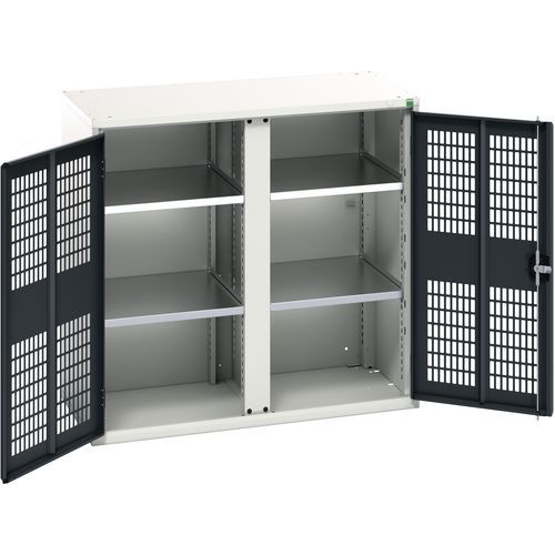 Kovová skriňa na údržbu Bott Verso, drôtené dvere, 100 x 105 x 55 cm, 4 police, šedá-antracit