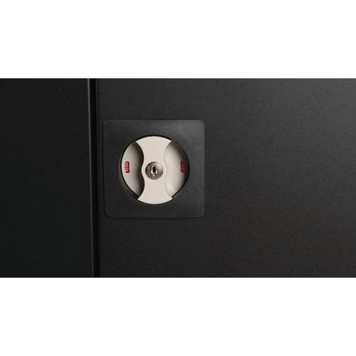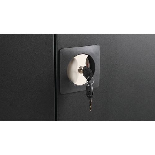 Uzamykanie skrine cylindrickým zámkom na kľúč.