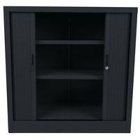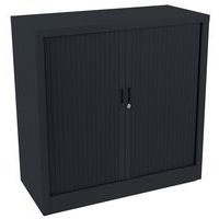 - Nízka kovová skrinka vhodná na ukladanie šanónov, prospektov a kancelárskych dokumentov.