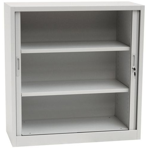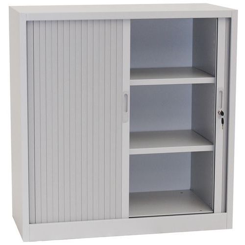 Kovová spisová skriňa s roletou, 2 police, 105 x 100 x 45,7 cm, sivá