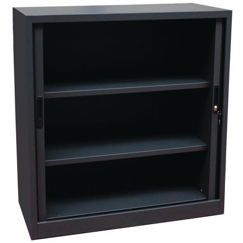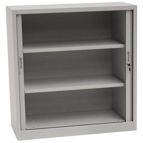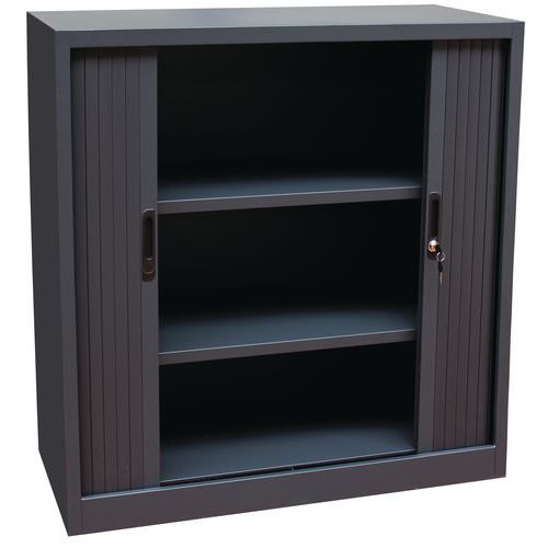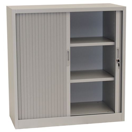 - Skrine s dvomi nastaviteľnými policami a plastovými roletami, ktoré je možné plne zasunúť do strán. Možnosť uzamknutia cylindrickým zámkom.