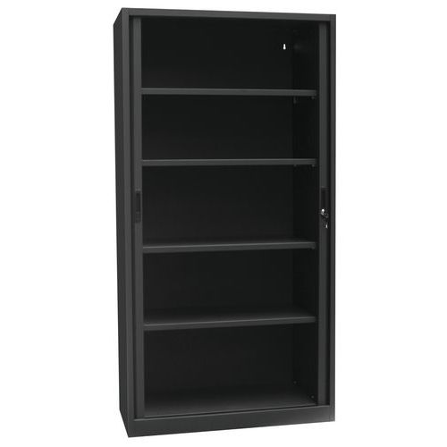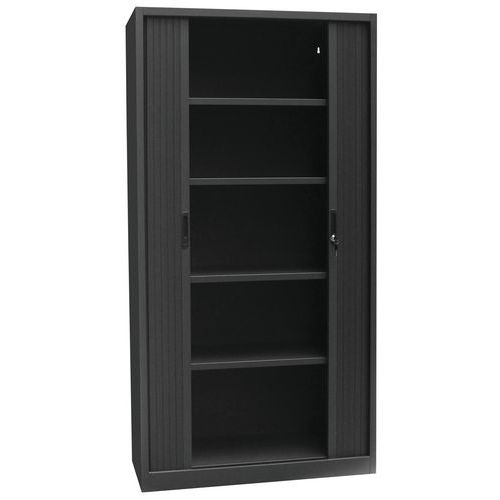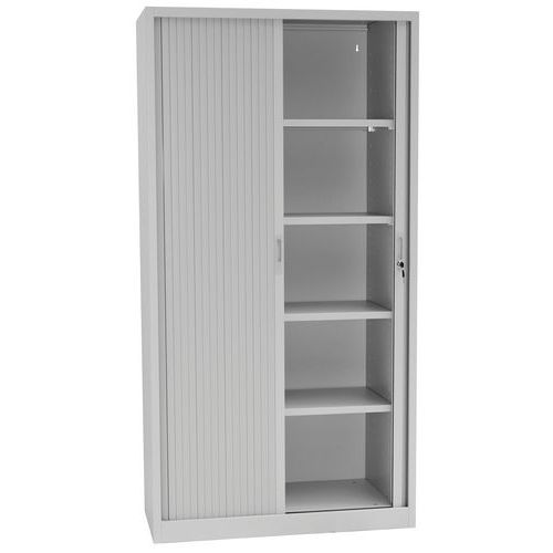 - Skrine so štyrmi nastaviteľnými policami a plastovými roletami, ktoré je možné plne zasunúť do strán. Možnosť uzamknutia cylindrickým zámkom.