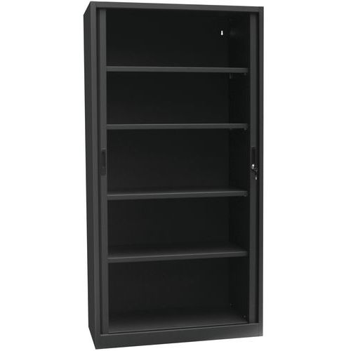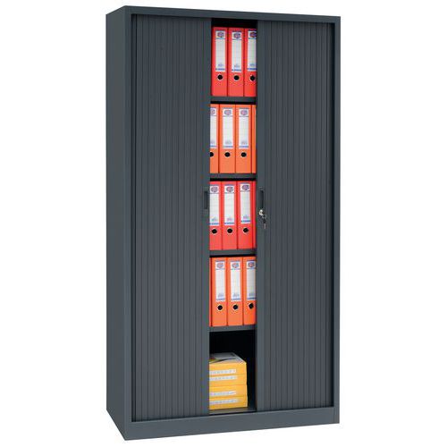 Kovová spisová skriňa s roletou, 4 police, 195 x 100 x 45,7 cm, antracit
