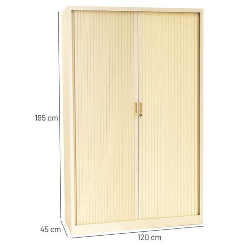 Kovová spisová skriňa s roletou, 4 police, 195 x 120 x 45 cm, béžová
