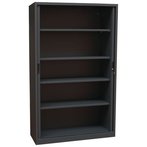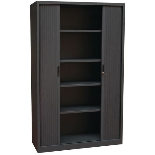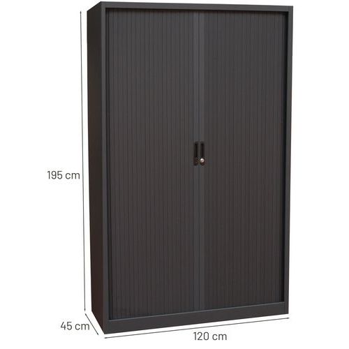 Kovová spisová skriňa Ekwo s roletou, 4 police, 195 x 120 x 45 cm, čierna/strieborná