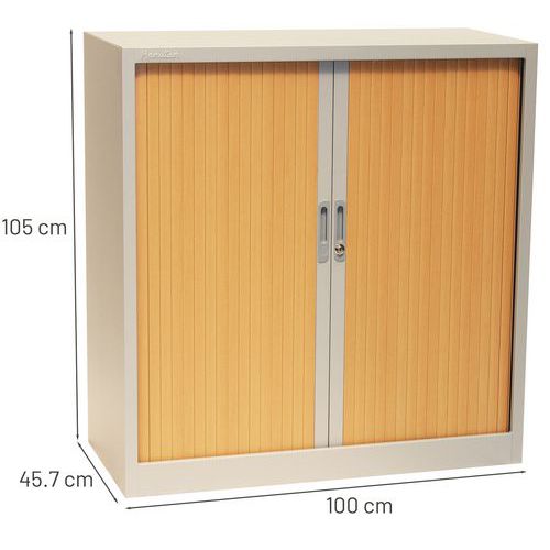 Kovová spisová skriňa s roletou Manutan Expert, 2 police, 105 x 100 x 45,7 cm, sivá/buk