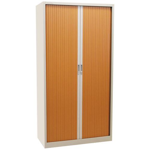 Kovová spisová skriňa s roletou Manutan Expert, 4 police, 195 x 100 x 45 cm, sivá/čerešňa