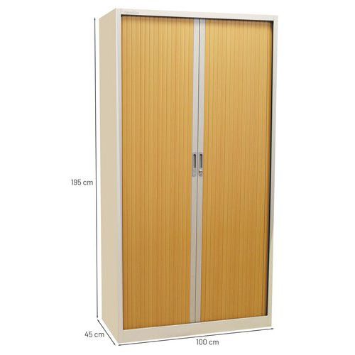 Kovová spisová skriňa s roletou Manutan Expert, 4 police, 195 x 100 x 45 cm, sivá/buk