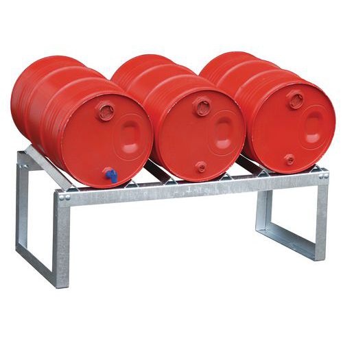 - Kovový regál na vodorovné skladovanie 60l sudov.