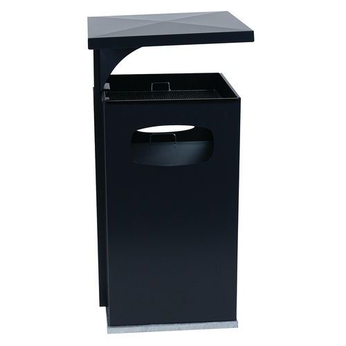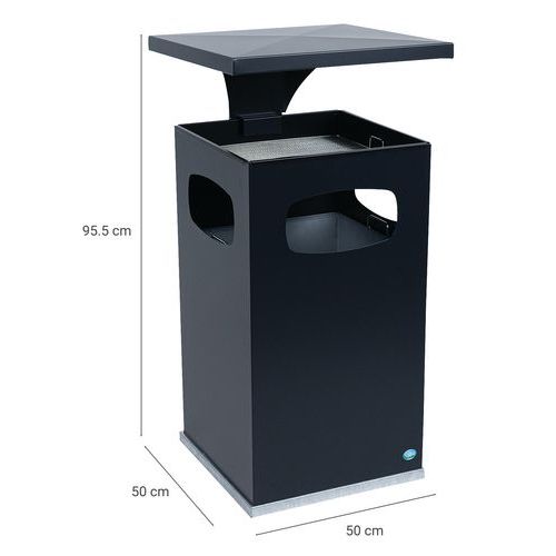 Vonkajšie odpadkové koše z pozinkovanej ocele s popolníkom vo viacerých farebných variantoch. Popolník s vložkou z pozinkovanej ocele, povrch je vybavený galvanizovaným povrchom na ohorky cigariet. Popolník je chránený strieškou proti dažďu. Obsahuje vnútornú nádobu z pozinkovanej ocele, ktorá je vybavená držiakom. Ošetrené epoxidovou farbou odolnou proti UV žiareniu, čo zaisťuje stálu farebnosť. Uzamykateľný pomocou kľúča.