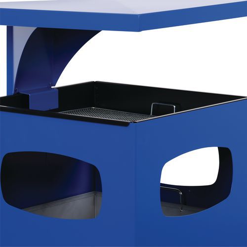 Vonkajšie odpadkové koše z pozinkovanej ocele s popolníkom vo viacerých farebných variantoch. Popolník s vložkou z pozinkovanej ocele, povrch je vybavený galvanizovaným povrchom na ohorky cigariet. Popolník je chránený strieškou proti dažďu. Obsahuje vnútornú nádobu z pozinkovanej ocele, ktorá je vybavená držiakom. Ošetrené epoxidovou farbou odolnou proti UV žiareniu, čo zaisťuje stálu farebnosť. Uzamykateľný pomocou kľúča.