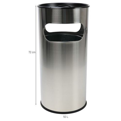 Kovový vonkajší odpadkový kôš Manutan Expert Stream s popolníkom, objem 50 l, nehrdzavejúca oceľ