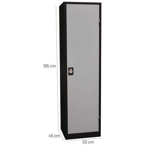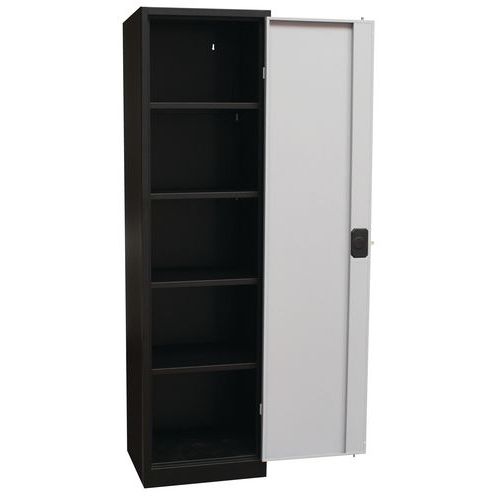 Kovová vysoká spisová skriňa Manutan Expert 2000, 195 x 53 x 45 cm, čierna/sivá
