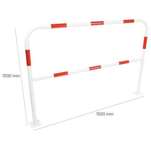 Kovová zábrana Manutan Expert, dĺžka 150 cm, biela/červená, priemer 38 mm