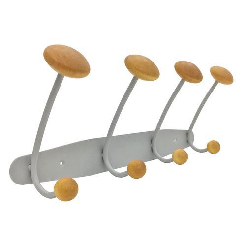 - Kovový vešiak s drevenými háčikmi na upevnenie na stenu.