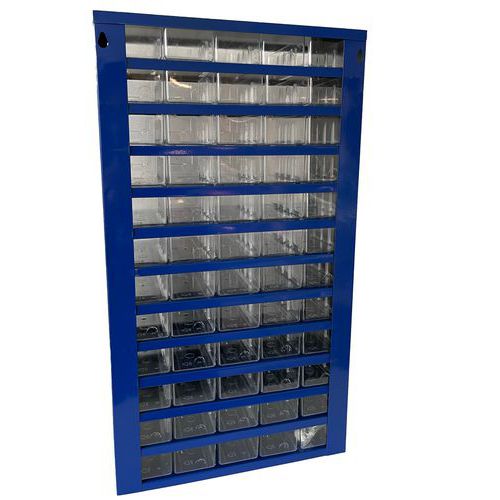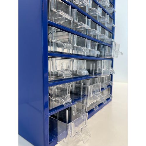 - Kovový zásobník so zásuvkami vhodný na skladovanie drobného materiálu a nástrojov.