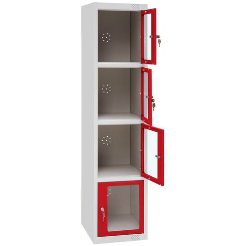 Kovový šatník Manutan Expert Jenny, 4 boxy s priezorom, červený