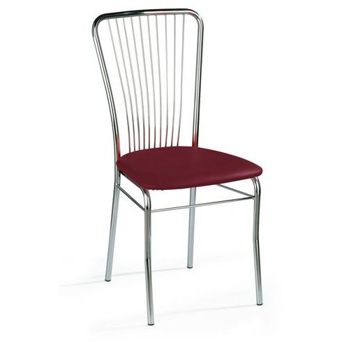 Štýlová jedálenská stolička zostavená z pohodlného sedadla z kvalitnej syntetickej kože v troch farebných variantoch a spevnenej oceľovej konštrukcie. Zaručuje dlhodobý estetický vzhľad, ktorý je dosiahnutý povrchovou úpravou chrómom a ľahké uskladnenie vďaka stohovateľnosti stoličiek. Predaj po baleniach. Nosnosť tejto dizajnovej stoličky do 110 kg.
