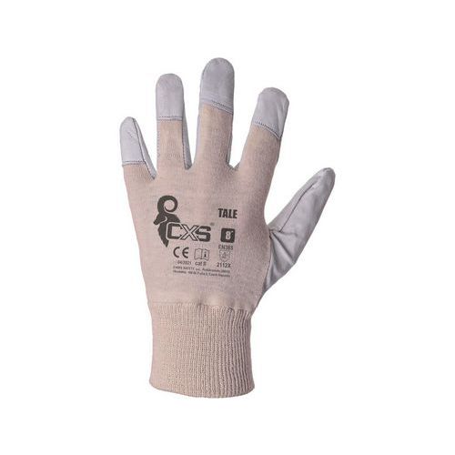 Kombinované pracovné rukavice s pružnou pletenou manžetou.