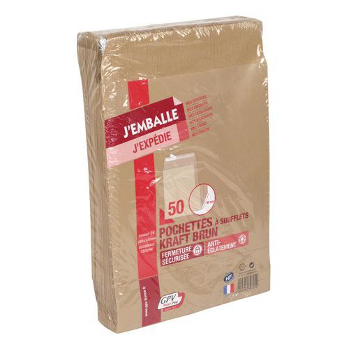 - Kraftový papier odolný proti prasknutiu a roztrhnutiu. Rýchle a ľahké uzatvorenie vďaka samolepiacemu uzáveru s ochranným prúžkom.