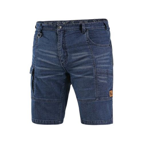 Pánske džínsové kraťasy, pás s pútkami na opasok a plastovým príveskom, 2 predné vrecká, 2 zadné vrecká z materiálu CORDURA, bočné multifunkčné vrecká, na pravom vrecku pútko pre kladivo. Veľkosť: 46-62