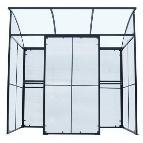 - Prístrešok je primárne voľne stojací, je možné ho pripevniť k podkladu skrutkami (nie sú súčasťou balenia).