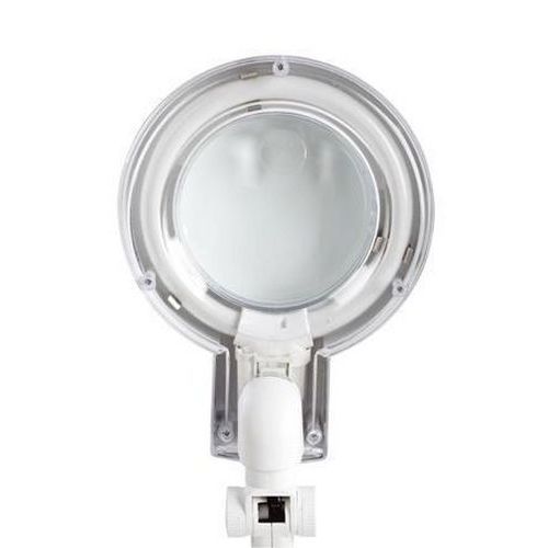 - Laboratórna lampa so žiarivkou a kruhovým objektívom.Polohovateľná a otočná o 360° vďaka otočným kĺbom.Pripevnenie k doske stola svorkou, ktorá je súčasťou lampy.