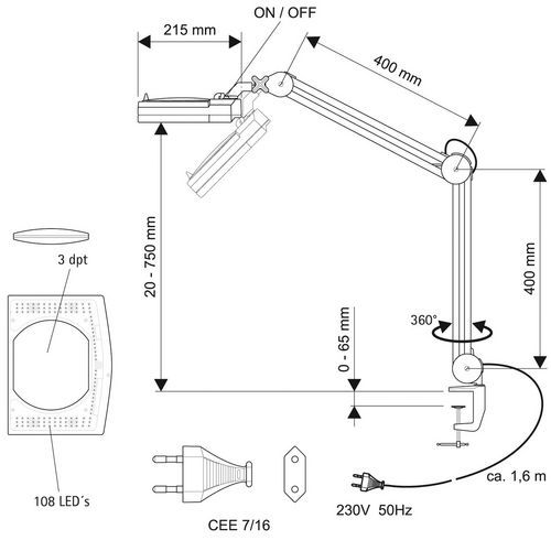 | Názov produktu | Laboratórna lampa Maul so štvorcovou lupou, 7 W |
