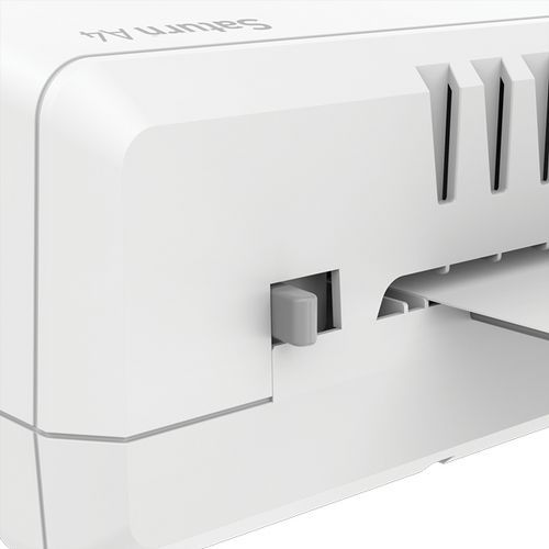 - Je vybavený unikátnym systémom Jam Free, ktorý výrazne znižuje riziko zaseknutia laminovaného dokumentu vo vnútri stroja.