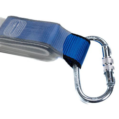 - Lano s jednou vysokopevnostnou oceľovou skrutkovacou karabínou. Pomáha udržať polohu pri dlhodobej práci vo výške.