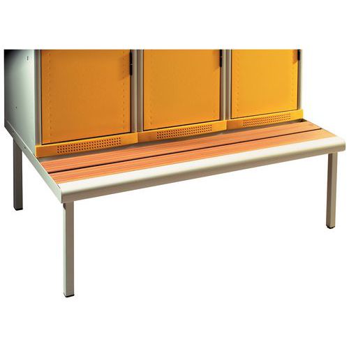 Lavice s oceľovou konštrukciou a plastovou sedacou plochou sa umiestňujú pod kovové šatníky. Laty z PVC vo farbe tík. Nastaviteľné nohy. Šírka sedacej plochy: 30 cm.