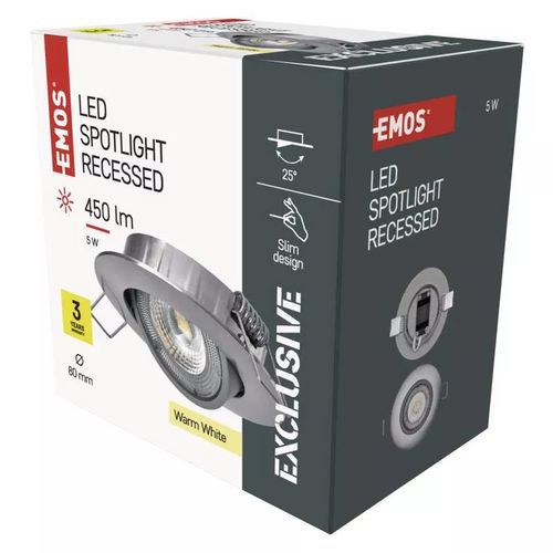 LED bodové svietidlo Emos Simmi, strieborné, 5 W, teplá biela