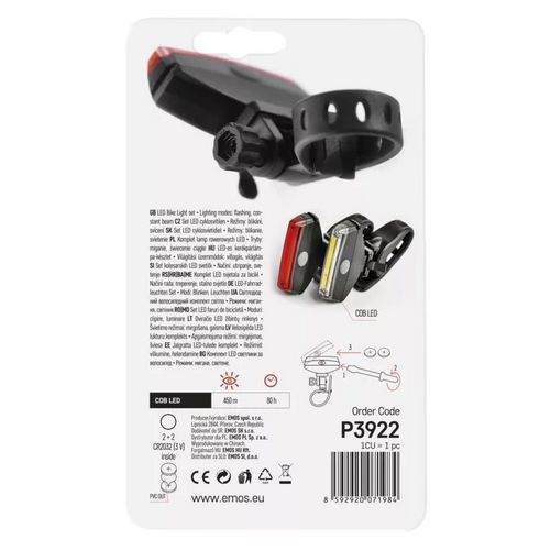 | Názov produktu | LED predné + zadné svietidlo na bicykel P3922, 22 lm |