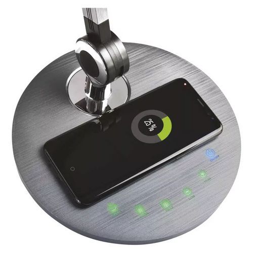 - Okrúhla LED lampa na stôl s bezdrôtovým nabíjaním telefónu.