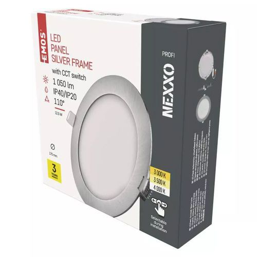 LED vstavané svietidlo Emos NEXXO, kruhové, 12,5 W, so zmenou CCT, strieborné