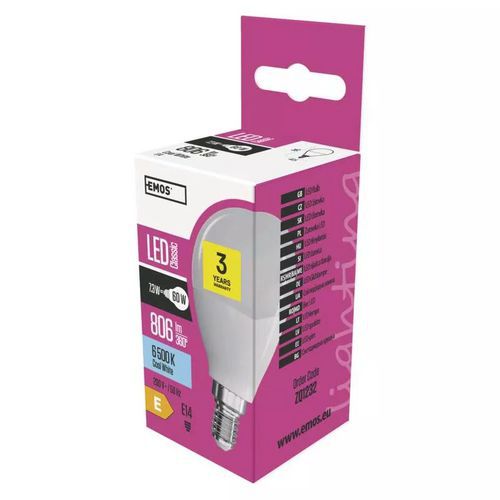 | Názov produktu | LED žiarovka Emos Classic Mini Globe, 7,3 W, E14, teplá biela |