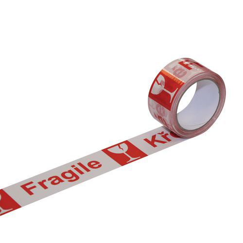 - Biela lepiaca páska so šírkou 50 mm a s nápisom krehké. Vhodná na expedíciu a pod.