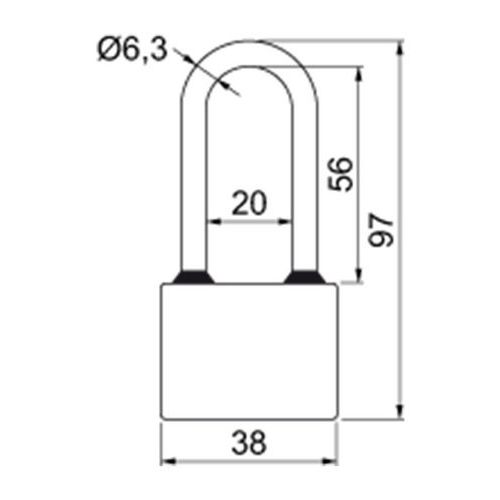 Liatinový visací zámok s predĺženým strmeňom, priemer strmeňa 6,3 mm, výška 62,5 mm, SU4