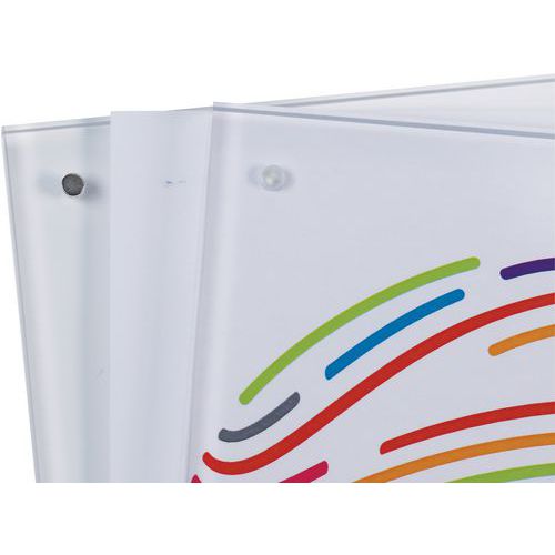 - Vloženie dokumentu medzi plastové tabuľky a uzavretie pomocou 4 magnetických bodov v každom rohu.