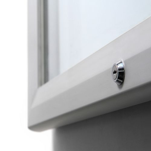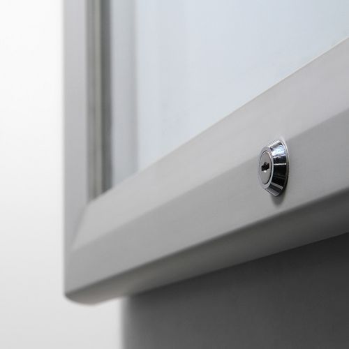 Magnetické vitríny so strieborným hliníkovým rámom vhodné do exteriéru. Lakovaná zadná stena je popisovateľná špeciálnou fixkou. Vitrína je uzamykateľná. Bezpečnostné ESG sklo s hrúbkou 4 mm. ESG Sklo: Ide o špeciálne bezpečnostné tvrdené sklo, ktoré sa používa napr. ako výplň dverí alebo okien automobilov.